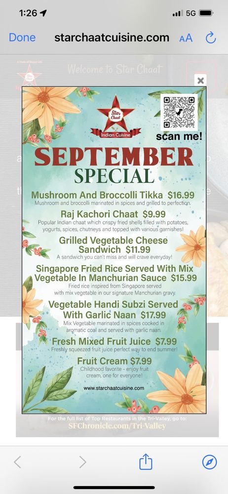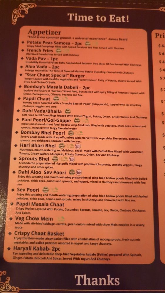 Star Chaat Cuisine Menu